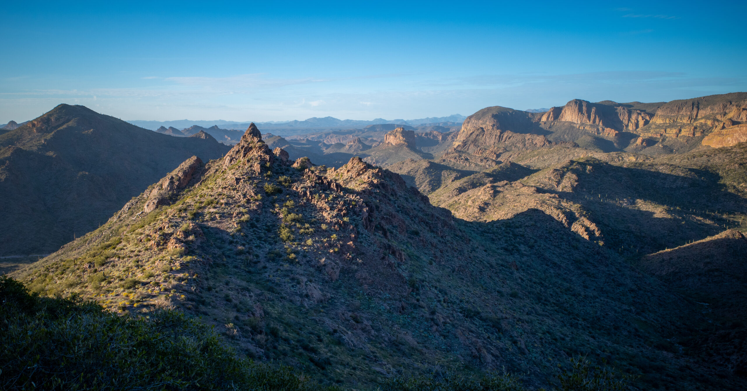This route stands out for its constant and varied views of Weaver’s Needle, culminating in 360-degree views from the top of Black Top Mesa, one of the best vantage points in the Superstitions. The perspective changes throughout the hike, from canyon views near Fremont Saddle to wide-open desert basins and elevated mesa viewpoints, making it feel like a completely different experience each day.